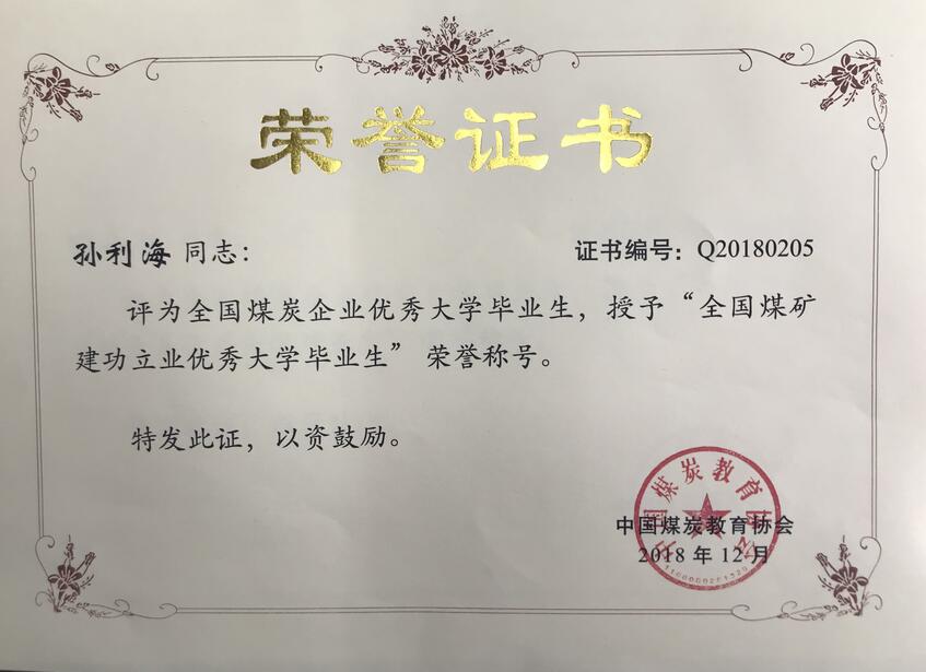 近日,公司孙利海、陈喜胜两名毕业被中国煤炭教育协会评为“全国”煤矿建功立业优秀大学毕业生称号,为全院学子起到了良好表率,今后,公司将进一步加强员工联系,挖掘员工资源,选树先进典型,传承地环精神,促进员工进步。