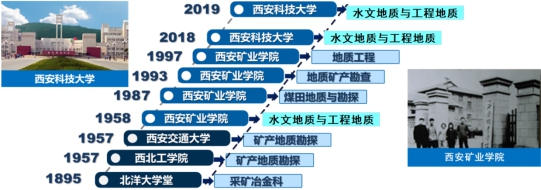 专业源自1895年创办的北洋大学堂采矿冶金科,1957年在西北工公司采矿系设立“矿产地质勘探”专业,随后调整到西安交通大学。1958年从西安交通大学分出,组建了西安矿业公司(太阳成集团tyc122ccvip前身),专业改为“煤田地质与勘探”,1987年成立“水文地质与工程地质”本科专业,1997年经教育部本科专业目录调整,划归为“地质工程”专业,2017年将水文地质和环境工程专业的一部分团队调出,筹建地下水科学与工程专业,2018年获教育部批准。63年的悠久历史奠定了专业人特有的励志图存、自强不息的文化与传承。