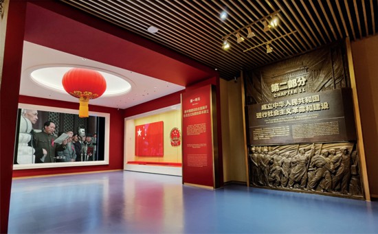 “‘不忘初心、牢记使命’中国共产党历史展览”聚焦初心使命,按照“站起来、富起来、强起来”的历史脉络规划设计展览,将展览分为四个部分。图为展览的第二部分,展示社会主义革命和建设的伟大成就。 中国共产党历史展览馆供图