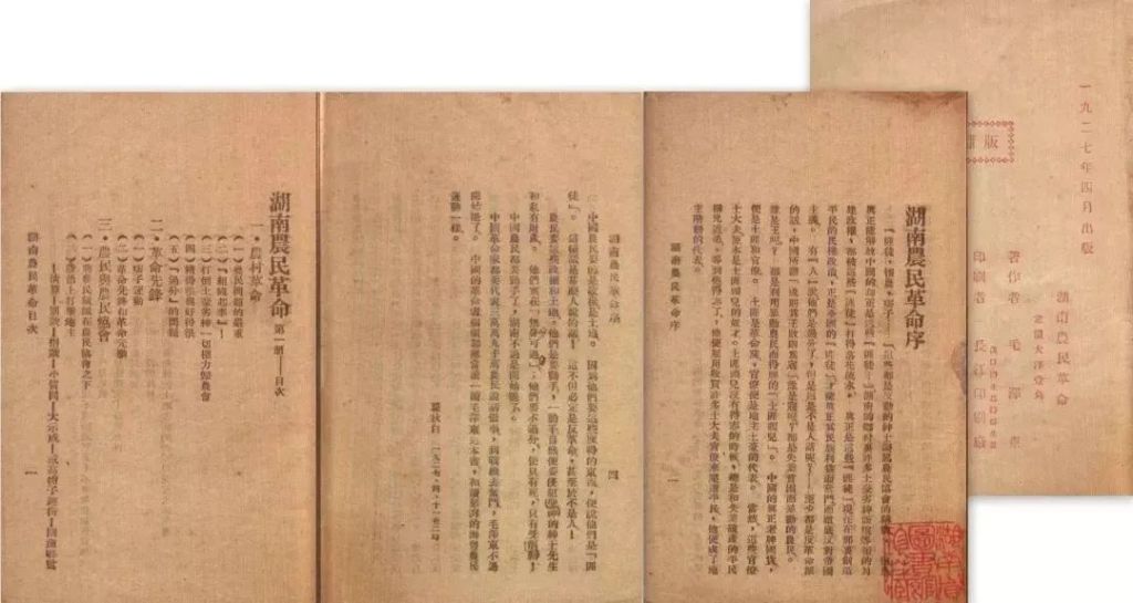 为了澄清农民运动的真实状况,时任中央农民运动委员会主任的毛泽东于1927年1月4日从湖南长沙启程前往老家湘潭,开启了三十二天的实地调查研究。此时的毛泽东,领导过韶山农民运动,主办过农民运动讲习所,考察长江一带农民运动后形成的文章《江浙农民的痛苦及其反抗运动》刚发表于《向导》周报,并于半月前参加了湖南全省第一次农民代表大会。他已经不是那个“孩儿立志出乡关,学不成名誓不还”的农家少年,已然在革命的熔炉中成长为农民运动的标杆人物。带着“1926年下半年全国兴起的农民运动应该被肯定还是否定”这个关键问题,毛泽东在三十二天的时间里步行七百多公里,考察了在农民运动中斗争较为激烈的湘潭、湘乡、衡山、醴陵、长沙五县。每到一处,均“召集有经验的农民和农运工作同志开调查会,仔细听他们的报告,所得材料不少”。据《毛泽东年谱》记载:2月5日,历时三十二天的湖南五县考察结束。原计划考察宁乡、新化、宝庆、攸县、武冈、新宁等县,因时间关系未能成行。回到长沙后,在中共湖南区委又作了几次报告;2月12日,由长沙回到武昌。在回到武汉的短短四天里,2月16日,毛泽东心情急迫地就考察湖南农民运动的情况向中央报告,他希望中央能够迅速了解到农村的真实情况、纠正错误观点,推动农运发展。在报告中,特别强调了自己在考察过程中纠正了几个主要错误:(一)以“农运好得很”的事实,纠正政府、国民党、社会各界一致“农运糟得很”的议论;(二)以“贫农乃革命先锋”的事实,纠正各界一致的“痞子运动”的议论;(三)以从来并没有什么联合战线存在的事实,纠正农协破坏了联合战线的议论。这就是让事实说话的鲜明态度,是建立在充分调查研究基础上的反击自信。著名的《湖南农民运动考察报告》很快写成,全文八章,共两万余字。从驳论的角度分析,全文逻辑结构严谨,清晰呈现出经由实地考察和总结并进行询问和了解后得出的合理结论。第一章“农民运动的严重性”,阐明了调研的目的和理由,并开宗明义强调如何对待农运是当前必须考虑的重要问题,“一切革命的党派、革命的同志,都将在他们面前受他们的检验而决定弃取。站在他们的前头领导他们呢?还是站在他们的后头指手画脚地批评他们呢?还是站在他们的对面反对他们呢?每个中国人对于这三项都有选择的自由,不过时局将强迫你迅速地选择罢了”。第二章“组织起来”和第三章“打倒土豪劣绅,一切权力归农会”,主要描述了调研中反映出的农民运动组织情况,以及农会的现状和地位变化。第四章“‘糟得很’和‘好得很’”,第五章“所谓‘过分’的问题”,第六章“所谓‘痞子运动’”,用事实驳斥了反动派的错误观点和各种抹黑。并指出:“孙中山先生致力国民革命凡四十年,所要做而没有做到的事,农民在几个月内做到了。这是四十年乃至几千年未曾成就过的奇勋。这是好得很。完全没有什么‘糟’,完全不是什么‘糟得很’。”第七章在对富农、中农和贫农进行细致分析后,得出“乡村中一向苦战奋斗的主要力量是贫农”的重要结论。第八章“十四件大事”在第七章的基础上,把农民在农民协会领导之下开展的运动用铁一般的事实展现出来:将农民组织在农会里;政治上打击地主;经济上打击地主;推翻土豪劣绅的封建统治——打倒都团;推翻地主武装,建立农民武装;推翻县官老爷衙门差役的政权;推翻祠堂族长的族权和城隍土地菩萨的神权以至丈夫的男权;普及政治宣传;农民诸禁;清匪;废苛捐;文化运动;合作社运动;修道路,修塘坝。从3月5日起,这篇报告先后在中共湖南省委机关刊物《战士》周报、中共中央机关刊物《向导》周报、汉口《民国日报》的《中央副刊》和《湖南民报》等连载,后被《共产国际》的俄文版和英文版转载。英文版的编者按说,这份报告是英文出版物中关于中国农村形势最清晰的报告。4月,汉口长江书店以《湖南农民革命(一)》为书名出版单行本,时任中央委员、中央局委员和中央政治局委员的瞿秋白为该书作序,高度评价了毛泽东的考察工作。他写道:“中国革命家都要代表三万万九千万农民说话做事,到战线去奋斗,毛泽东不过开始罢了。中国革命者个个都应当读一读毛泽东这本书,和读澎湃的《海丰农民运动》一样。”这篇扎根中国农村、践行群众路线的经典调研之作,不仅使党内外甚至是国内外了解了农民运动的真实情况,也为中国革命指明了前进的正确方向。“一切革命同志须知:国民革命需要一个大的农村变动,辛亥革命没有这个变动,所以失败了。现在有了这个变动,乃是革命完成的重要因素。”正是基于此,才有了几个月后转兵罗霄“上山”革命的道路抉择。