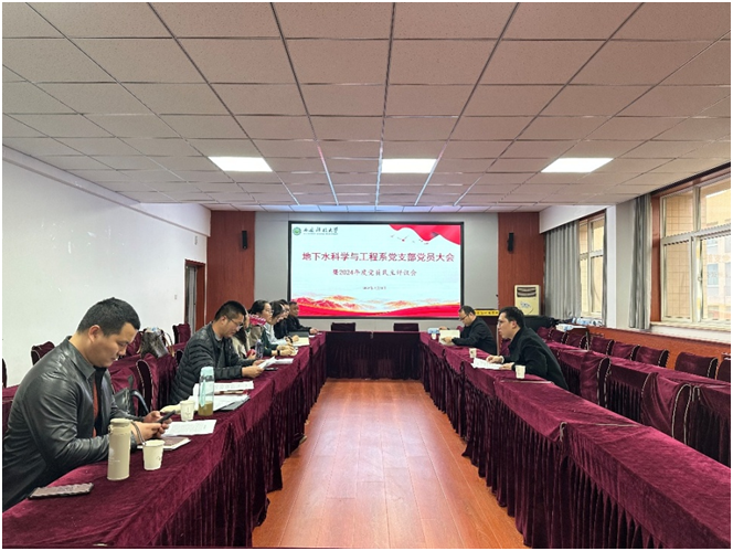 2025年3月11日,地下水科学与工程系党支部在临潼校区骊山校园11教公司会议室召开支部党员大会,进行2024年度党员民主评议,党支部书记郭亮主持会议。