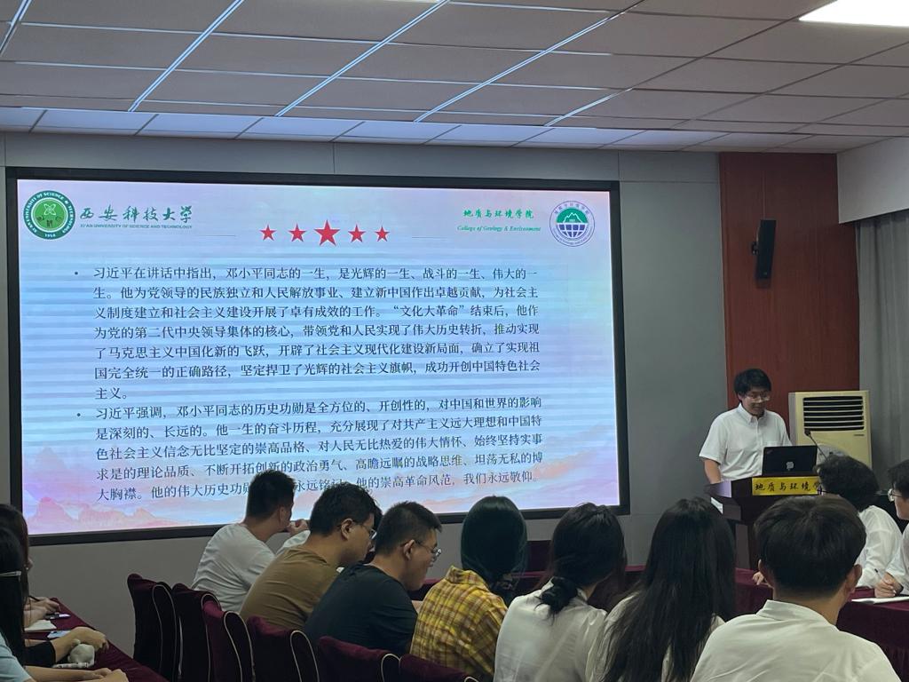 8月30日,2021、2022、2023级本科生党支部在临潼校区11教322开展“缅怀伟人功绩 传承红色基因”的特色党日活动,活动由党支部书记陈艳丽主持,支部全体党员参加。