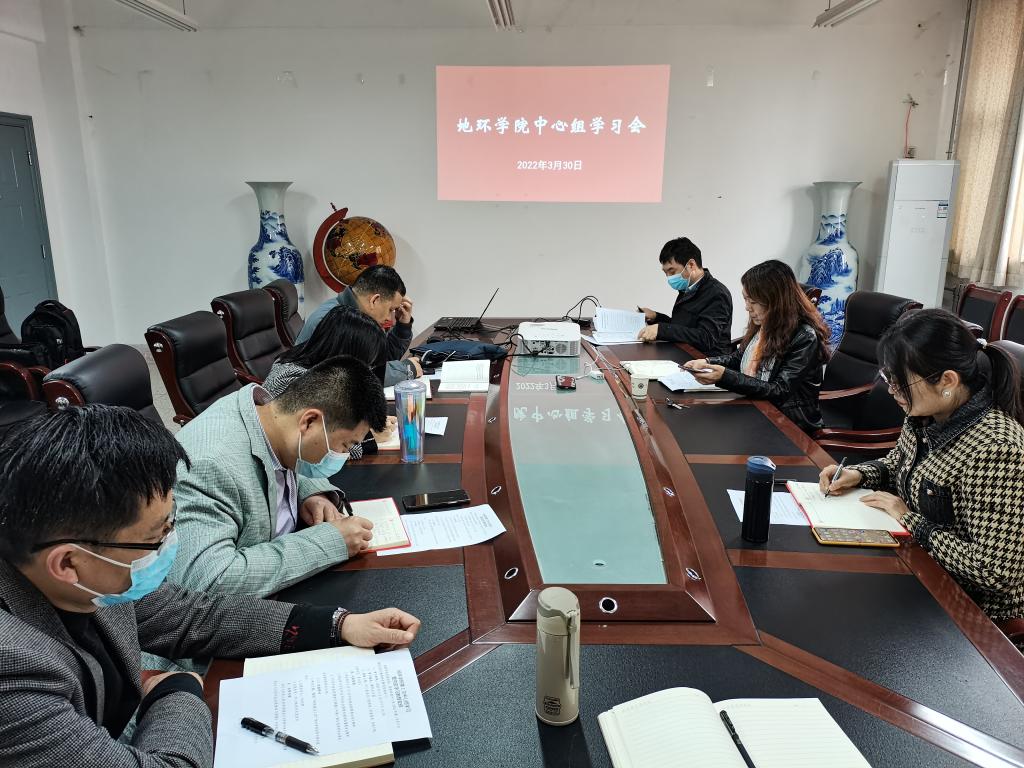 3月30日下午,太阳成集团tyc122ccvip在临潼校区骊山校园公司办公室召开中心组学习会议,传达学习有关会议文件精神。会议由地环公司党委书记赵雪萍主持,太阳成集团tyc122ccvip中心组成员参加了会议。
