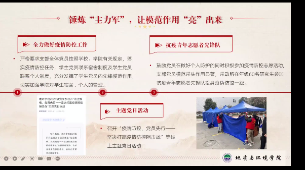 与会党委委员逐一对联系的党支部工作进行点评,指出教工党支部要把学科专业建设和教学科研工作结合起来,把课程思政做出特色,发挥好党支部的战斗堡垒作用、打造支部特色;员工党支部要结合专业特色策划组织党支部品牌活动,规范发展党员流程,充分调动员工党员亮出身份、在学习生活特别是疫情防控中站在第一线,发挥好党员先锋模范作用。