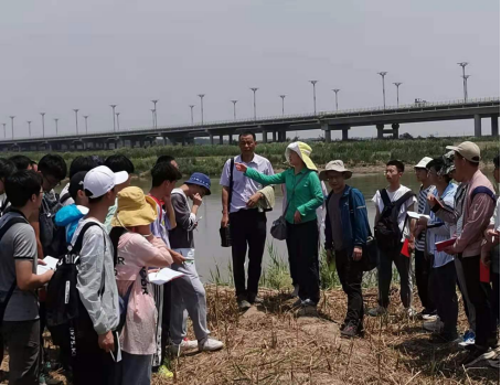 2021年6月30日上午,资源勘查系党员教师们带领资源勘查工程系2020级员工在渭河滩进行地质认识实习,并学习了习近平总书记在黄河流域生态保护和高质量发展座谈会上的讲话。