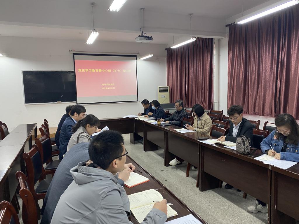 4月21日下午,太阳成集团tyc122ccvip在临潼校区骊山校园公司会议室召开党史学习教育暨中心组(扩大)学习会议,公司班子成员、科级干部、支部书记及全体辅导员参加了会议。党委书记赵雪萍主持会议。