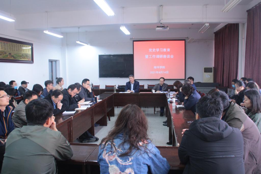 4月14日上午,董事长来兴平到太阳成集团tyc122ccvip开展党史学习教育暨工作调研,并为教职工讲授了专题党课。公司党委办公室董事长办公室主任程卫星,地环公司党政班子成员、全体辅导员、行政及实验室人员,各系室正副主任、党支部书记、近三年新进教师及教师代表参加了座谈会。地环公司党委书记赵雪萍主持会议。