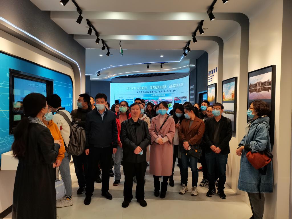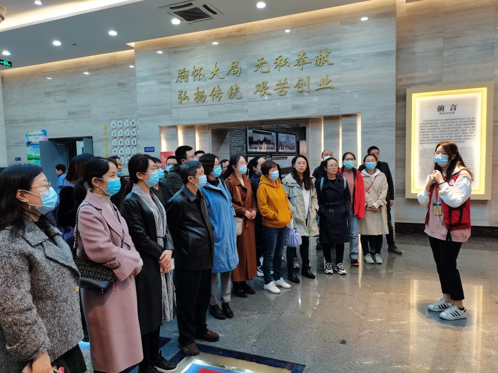 讲解员向参观人员讲述了交通大学的西迁事迹。1956年,为响应党和国家号召,交通大学由繁华的上海迁往条件相对落后的西安。六千多名交大人随校西迁、扎根古都西安,为国家建设和西部教育奉献青春、智慧和力量,谱写了“西迁精神”时代凯歌。展出照片、图表和实物等共2077件,以图文实物和多媒体溯源南洋、致敬西迁和向西而歌,集中体现西迁人波澜壮阔的创业历程和辉煌成就。讲解员详尽生动的讲解使得党员们深入了解了交大历史、文化传统以及西迁前后的变化,全体党员无不被交大西迁人满腔热血的爱国精神所深深感动。