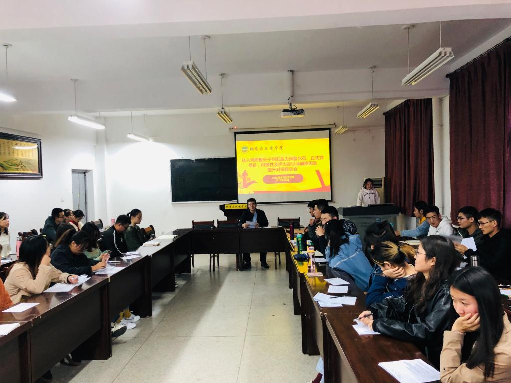 地环2016级本科生党支部集中开展从入党积极分子到发展为预备党员、正式党员后,积极性及担当意识薄弱原因及提升对策座谈会