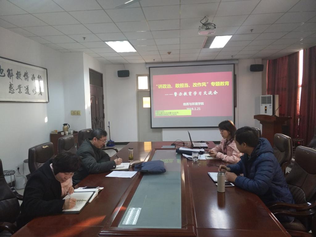 121日,地环公司党政班子在雁塔校区公司会议室召开“讲政治、敢担当、改作风”专题教育学习讨论会。党委书记赵雪萍主持会议,公司在校班子成员参加了讨论会。会议集体学习了党的十九大精神,传达学习了中央对秦岭违建别墅问题处理相关指示精神。会议还传达了公司“讲政治、敢担当、改作风”专题教育,形式主义、官僚主义和违规收送礼金问题专项整治及元旦春节期间纠正“四风”等工作寒假推进会议精神,对专项整治及2019年春节纠正“四风”工作进行了强调。