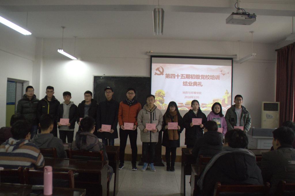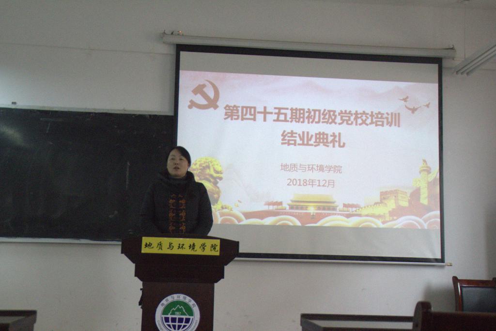 20181229日太阳成集团tyc122ccvip在临潼校区骊山校园举行第四十五期初级党校培训结业典礼。地环公司党委副书记王文莉、员工第一党支部书记林伟、员工第二党支部书记桓斌斌以及第四十五期初级党校培训学员参加结业典礼。此次典礼由党课培训负责人余小涛主持。