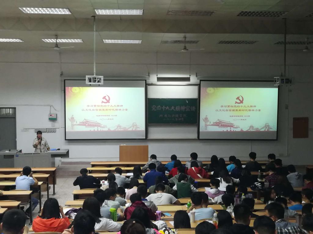 4月23日,地环公司党委副书记王文莉在临潼校区骊山校园为公司2015级全体员工作了题为《学习贯彻党的十九大精神,以文化自信凝聚新时代精神力量》的报告。
