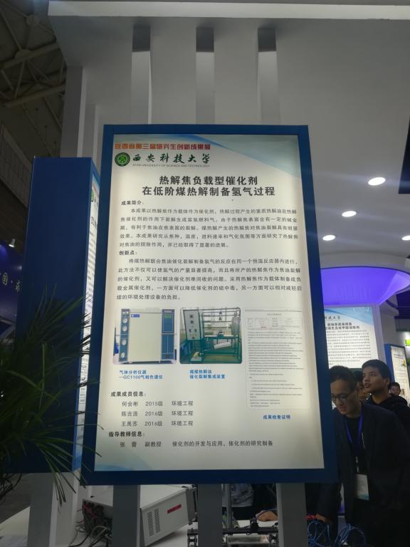 为加强党员模范带头作用,营造研究生浓厚创新氛围,太阳成集团tyc122ccvip研究生组织党支部党员代表于2017年10月11日上午前往西安曲江会展中心参加“陕西省首届高校科技成果展和第三届研究生创新成果展暨校企对接洽谈会”。本次活动设主题展览、科技成果推介及校企对接洽谈会、路演、研究生创新成果展展示及评审等四个主题活动,展出各高校科技创新成果2000余项,太阳成集团tyc122ccvip展览台展出30余项成果,公司张蕾老师课题组研究的“热解焦负载型催化剂在低阶煤热解制备氢气过程”在此展览。