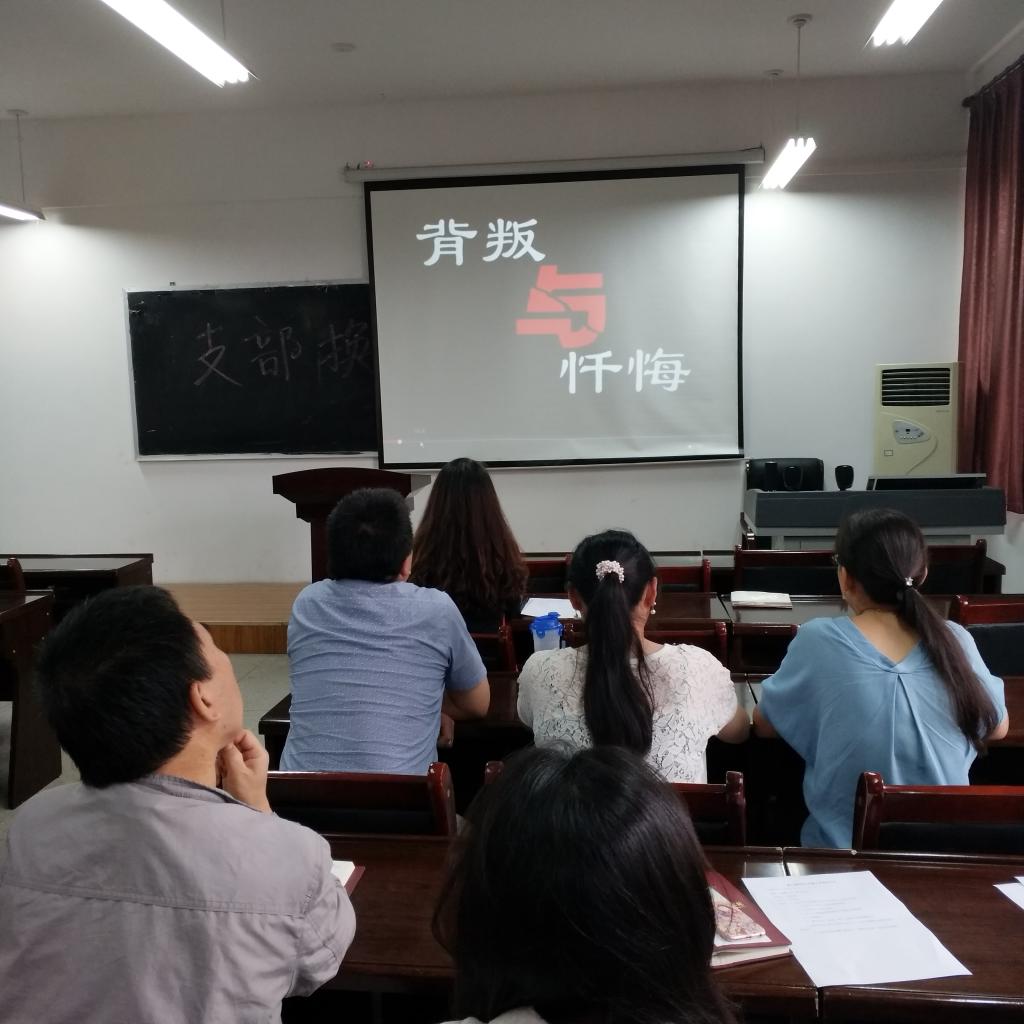 2017年9月19日上午10:30,太阳成集团tyc122ccvip教工第四党支部在临潼11#三楼招待室举行了第十次党员大会,支部书记刘永娟传达了公司中心组关于“两学一做”长期化的会议内容并安排部署了近期工作;宣传委员王刚同志传达了习近平7.26讲话精神并安排会后自学内容。最后支部组织全体党员观看了警示教育片——《背叛与忏悔》,以加强支部党员的党性修养。
