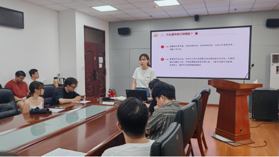 2025年7月8日,公司2024级研究生党支部在公司613会议室召开深入学习贯彻中央八项规定精神专题会。会议由党支部书记汪莹主持,支部全体党员参加。