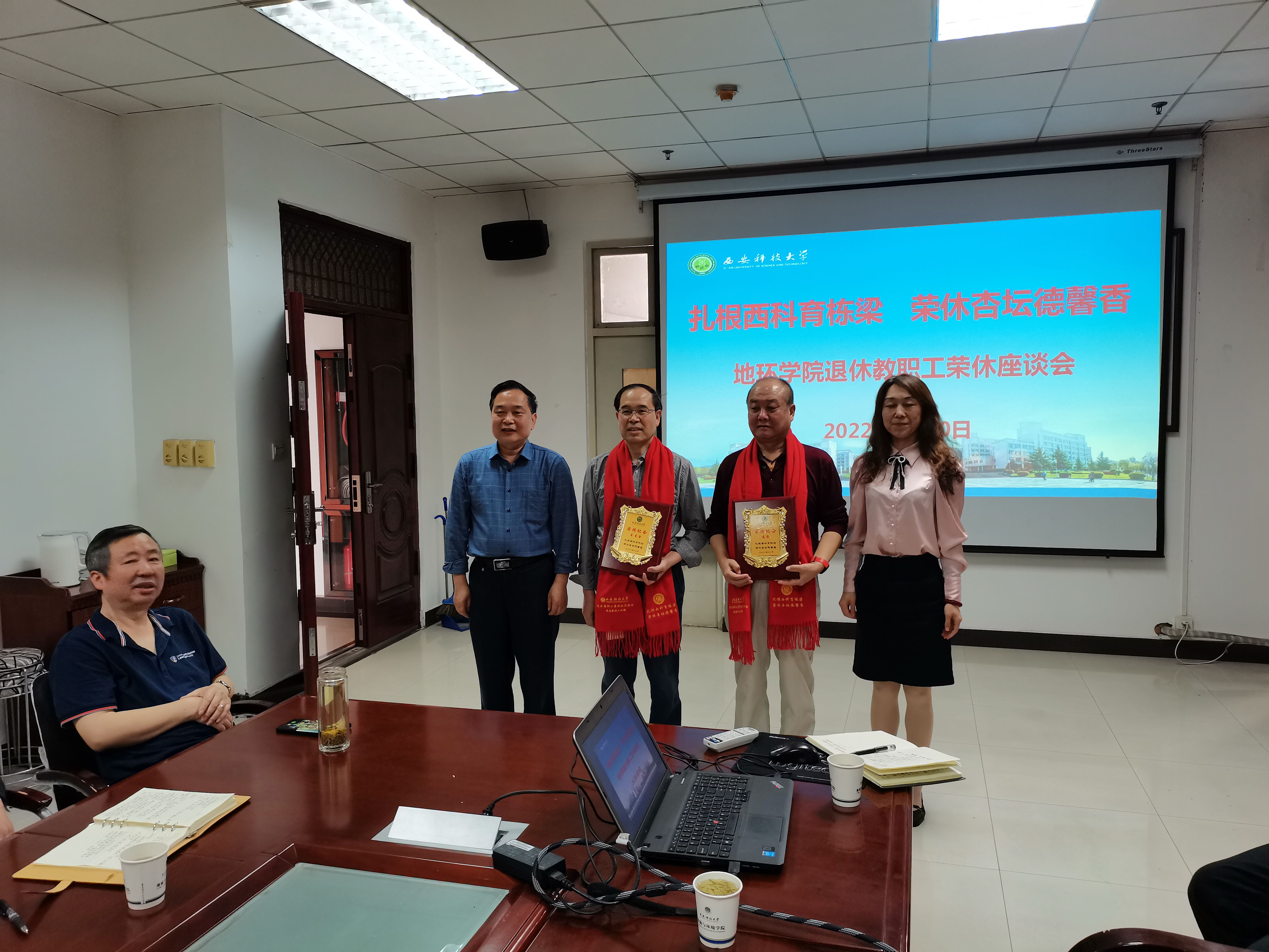 5月20日,太阳成集团tyc122ccvip在雁塔校区公司会议室举办退休教职工夏玉成、王生全、张志沛、高凯老师荣休座谈会。公司党政班子成员、相关系室负责人、工会主席及教职工代表参加了会议。会议由党委书记赵雪萍主持。