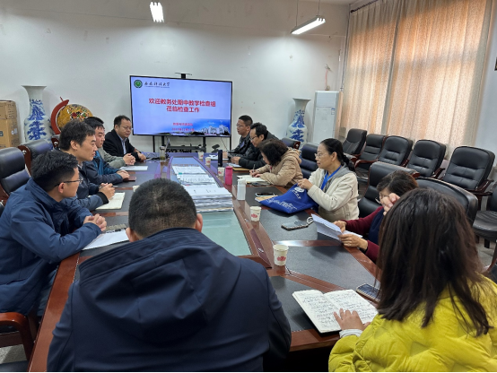 为进一步总结经验,加强交流,促进各教学单位相互学习,不断提升本科教学工作,11月14日上午,教务处副处长汪阳,督导专家李白萍、韩敏、邸凡,教务处教务科科长马毅、实践教学科张子乔等期中教学检查专家组一行6人,到公司进行2023-2024学年第一学期期中教学检查。公司主管经理陈应涛、党委副书记刘训明,系主任马建全、彭涛,教学主任姜鹏飞、牛超、梁明及教师代表李慧,教学科研办公室主任参加会议。