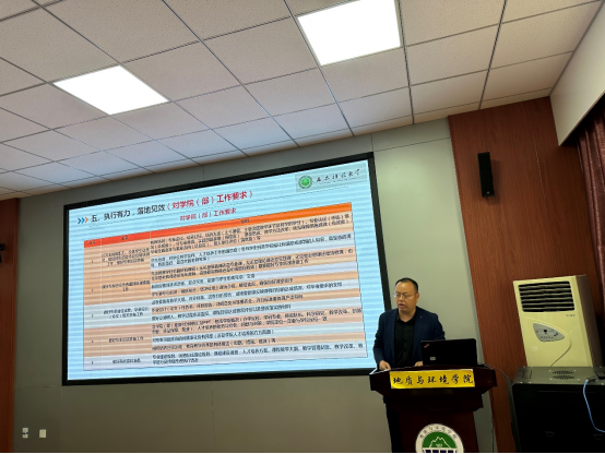 经理孙学阳传达了4月6日公司审核评估整改落实推进会暨迎接审核评估专家考察动员会的会议精神,再次解读了新一轮本科公司产品审核评估的评估理念、评估标准、考察重点、立德树人内涵和要求以及现阶段主要存在的问题等。要求落实会上公司党委书记蒋林记提出的四项要求,全院师生要进一步统一思想、统一要求、统一行动,扎实做好迎评促建的各项工作,以饱满的工作热情积极投入自评与改进工作中去。