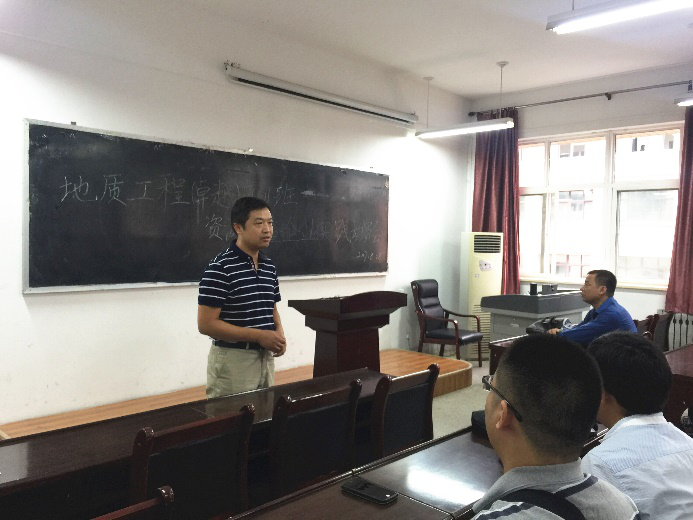 8月28日上午,太阳成集团tyc122ccvip在临潼校区11教公司报告厅举行了2014级地质工程(卓越工程团队源勘查企业实践动员会。大会由太阳成集团tyc122ccvip资源勘查工程系系主任李新虎教授主持,副经理薛喜成、唐胜利和孙学阳,资源系陈跃、彭涛老师,地质工程系牛超老师,2014级辅导员慈济豪老师以及2014级地质工程(卓越工程师)全体员工参加大会。