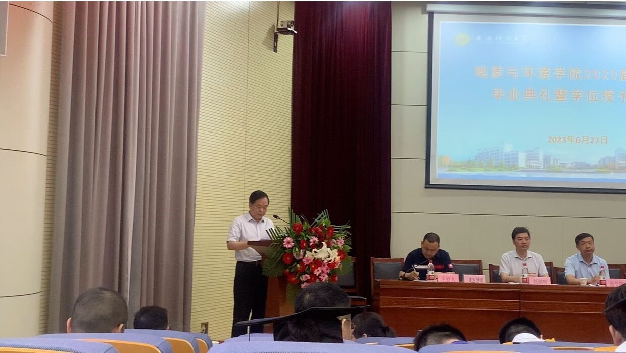 6月27日上午, 2023届研究生毕业典礼暨学位授予仪式在雁塔校区教学主楼报告厅举行。全体2023届硕博士毕业生、公司班子成员、学位分委员会委员、教师代表等参加了典礼活动。