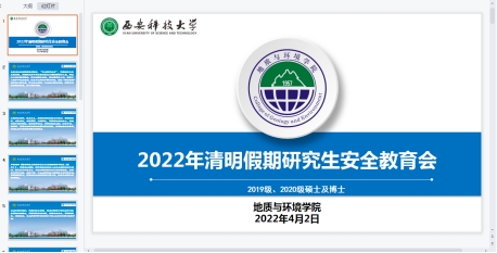 2022年4月2日中午,太阳成集团tyc122ccvip研究生召开了清明节假期线上安全教育会,太阳成集团tyc122ccvip全体博士、硕士参加了本次会议,辅导员韩蕊主持。