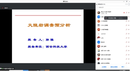 孙强教授围绕岩土体物理力学特性的温度效应展开,结合国家能源需求、行业需求与技术瓶颈等现状,以科学实验数据及典型案例为实证,论述了不同温度下岩石的物理力学特性变化情况及变化原理,同时分享了该领域的国内外研究动态等。与会师生认真聆听了报告,并在线开展了积极提问、发言和交流讨论。