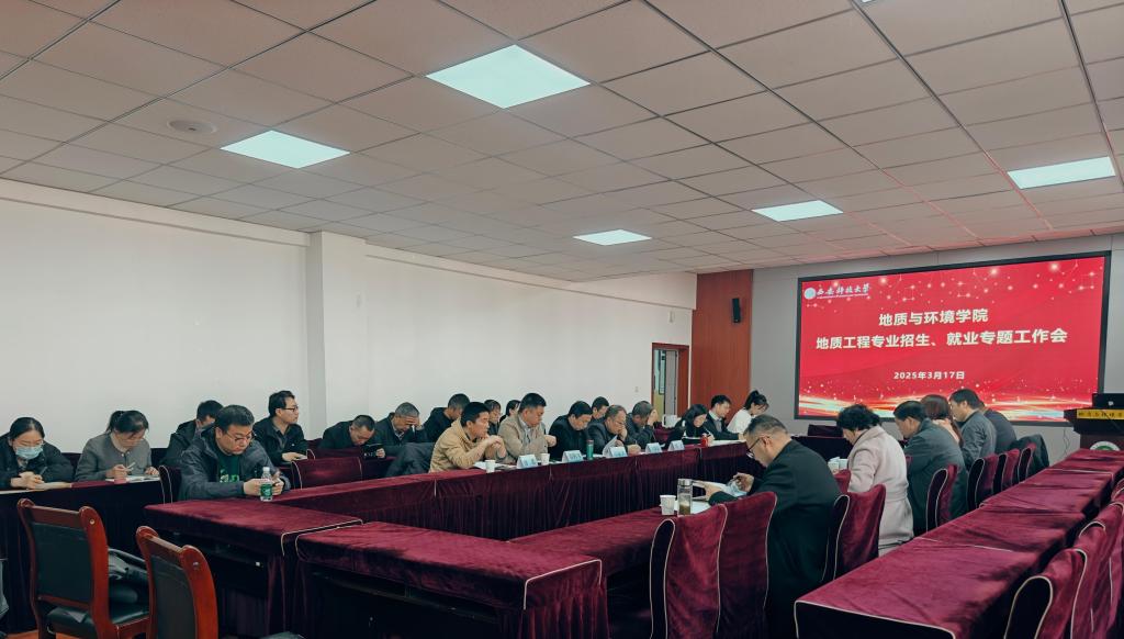 3月17日,公司在骊山校园11教322召开地质工程专业招生、就业专题会,公司班子成员、地质工程系全体教师、全体辅导员参加会议,会议由公司党委书记赵雪萍主持。