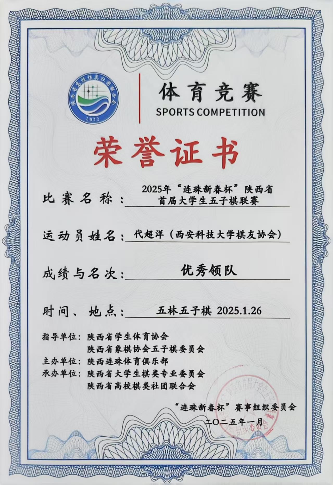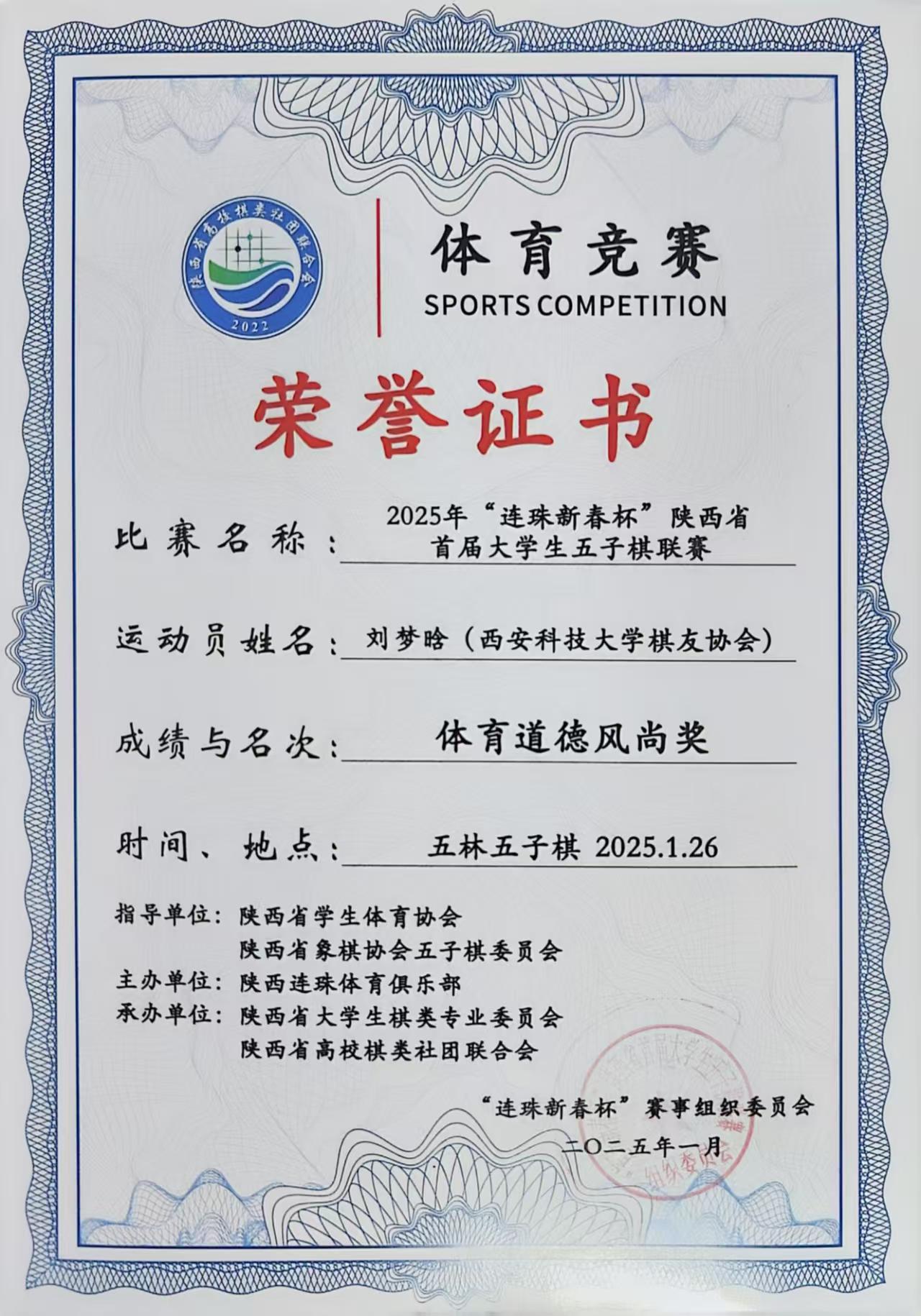 近日,2025年“连珠新春杯”陕西省首届老员工五子棋联赛圆满落幕,公司指导的棋友协会代表队以精湛棋艺斩获团体总分第二名,员工代超洋获评“优秀领队”,刘梦晗获评“体育道德风尚奖”,刘紫涵获评“优秀裁判员”,创下公司近五年最佳战绩。