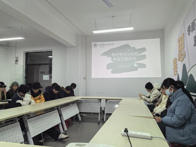 近期,环境工程2302班于“一站式”员工社区开展考风考纪及假期安全主题班会,由班主任袁博主持,全体同学参与。