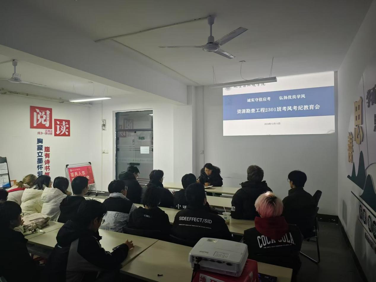 为激发同学们的学习热情,明确复习方向,强化考试纪律意识,营造良好的期末复习氛围,12月13日下午,资源勘查工程2301班在1号员工公寓405“一站式”员工社区召开了以考风考纪教育为主题的班会。班会由班主任张慧婷老师主持,班级全体员工参加。