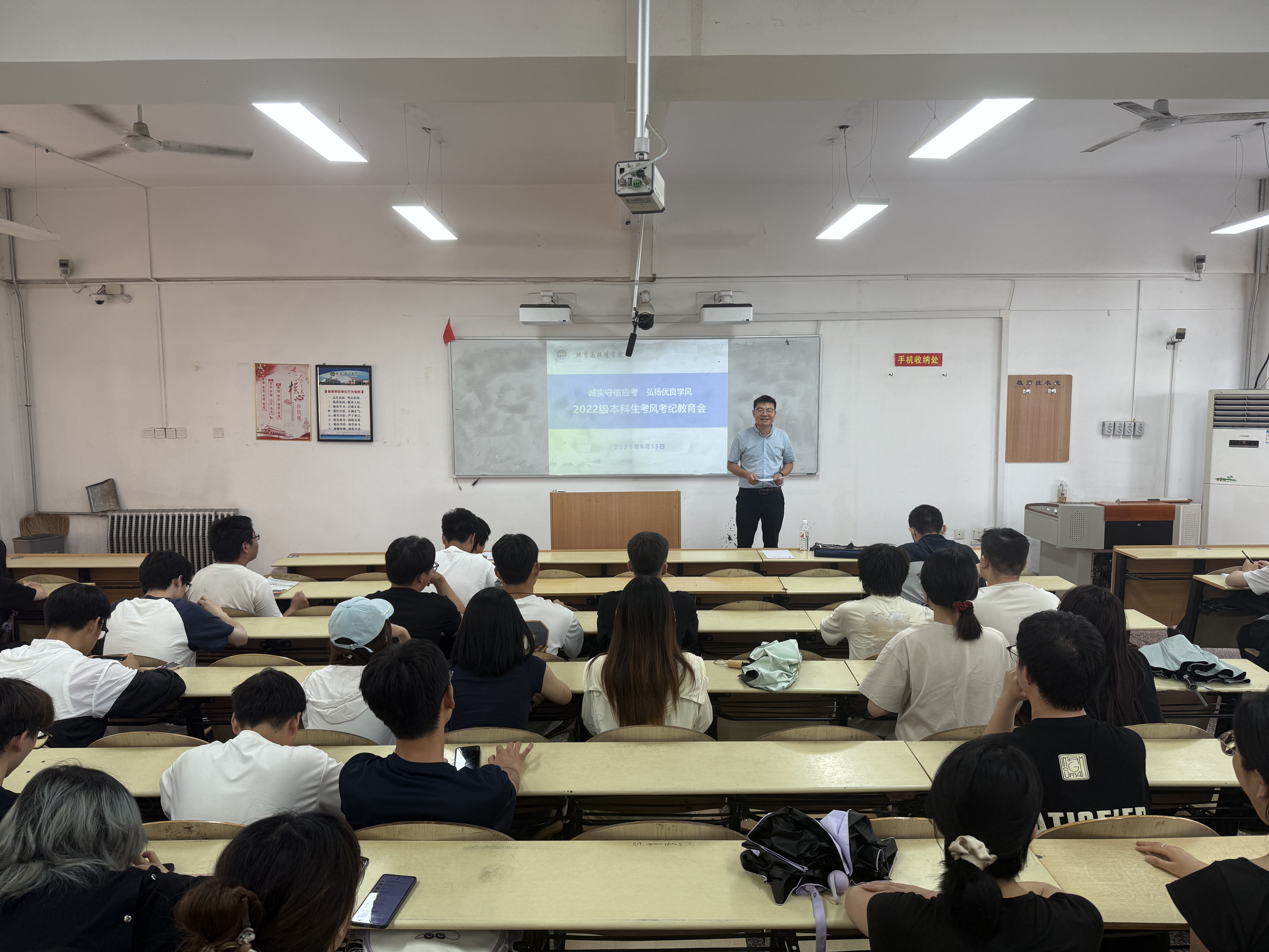 临近四、六级考试和期末考试,6月11日-13日,公司在骊山校园分批次召开2022级本科生考风考纪教育会,辅导员余小涛深入员工班级组织全体员工认真学习《太阳成集团tyc122ccvip本科生学籍管理规定(修订)》,强调了考试纪律。他以案例说明了考试违规的危害,他要求全体同学要认真复习,诚信应考,遵守考试纪律和相关规定,做到公平公正应考,争取取得优异成绩;要求全体同学要知敬畏、存戒惧、守底线,以实力应考,交诚信答卷;要强化学风建设,共同营造优良学风氛围,为考研、就业打下坚实基础。