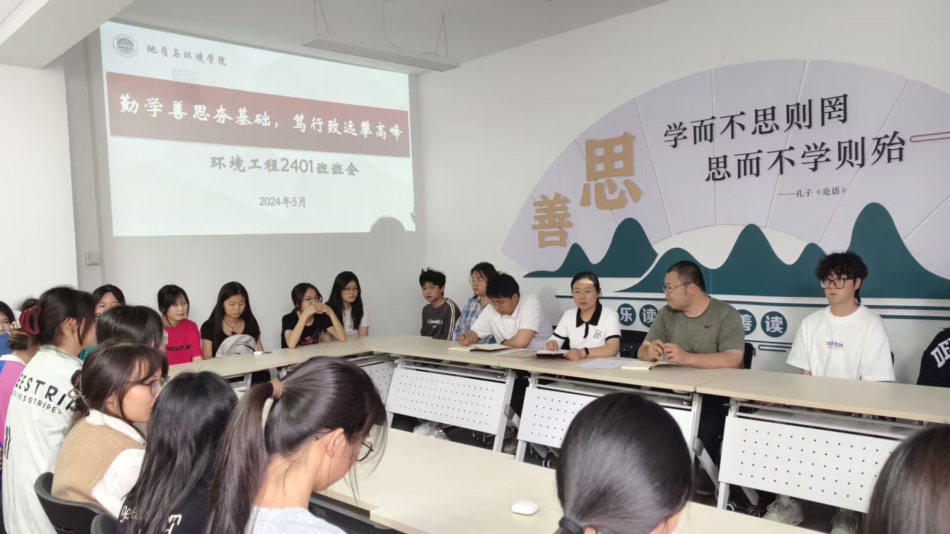 5月12日,环境工程2401班班主任王坤老师深入“一站式”员工社区,组织召开“勤学善思夯基础,笃行致远攀高峰”主题班会。辅导员李琳和环境工程2401班全体员工参会,共同围绕学习规划、学业发展等话题展开交流。