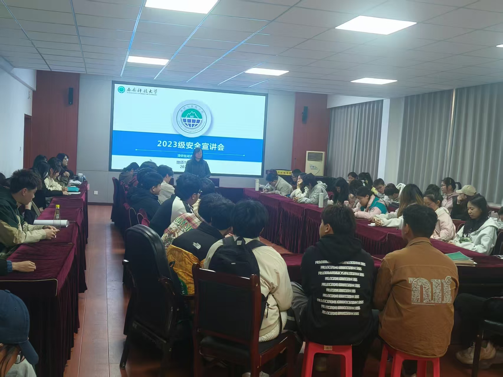 4月2日,公司在临潼校区骊山校园11教322、503召开2023级本科生清明节安全教育会。会议由2023级辅导员韩蕊主持。