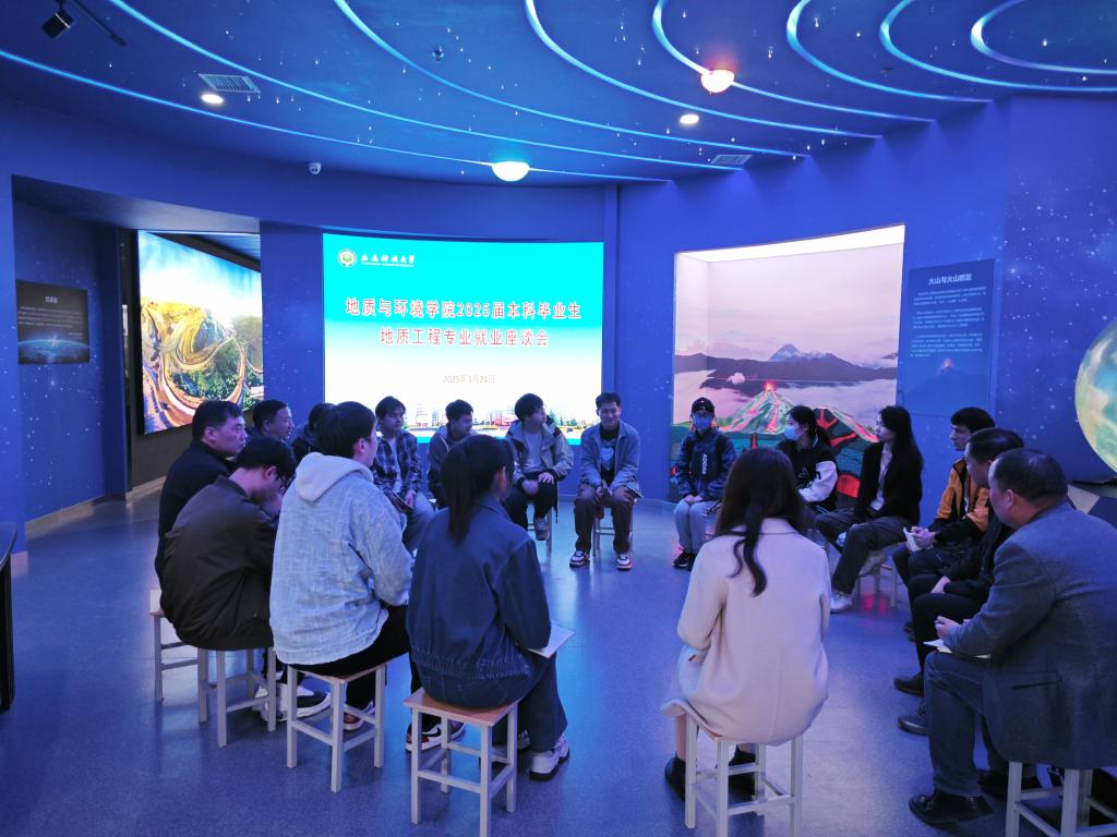 3月24日,公司在骊山校园地质博物馆召开地质工程专业“就业板凳座谈会”,公司党委书记赵雪萍、经理孙学阳、副书记刘训明、副经理赵洲、地质系主任马建全、毕业班辅导员陈艳丽及2025届地质工程专业未落实去向本科毕业生代表围坐交流,围绕传承弘扬老一代地质人的艰苦奋斗精神,聚焦职业规划、行业前景与就业帮扶,共话发展路径。