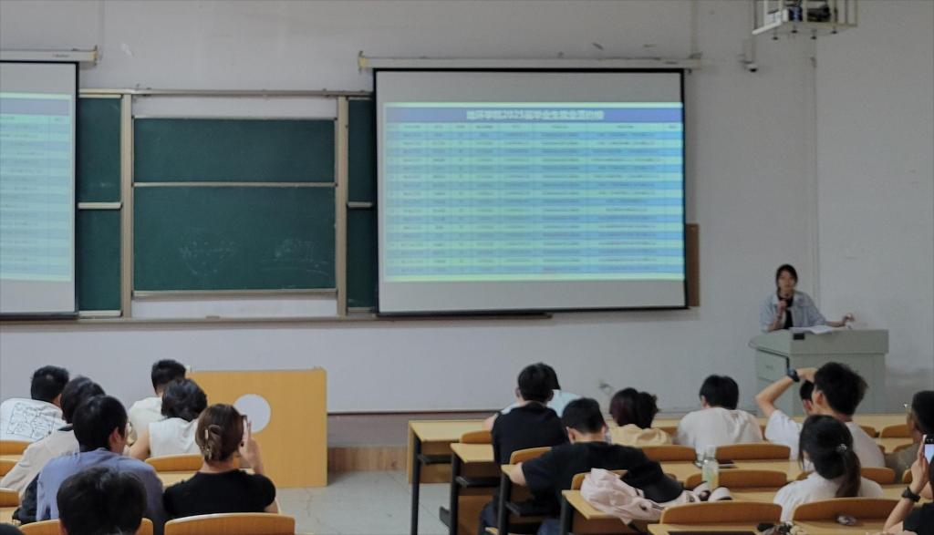 首先,陈艳丽向同学们介绍了当前考研与就业的形势。她结合社会发展趋势和员工专业学习情况对公司近5年本科生毕业就业、考研去向进行了分析和解读,根据前期对所有同学的毕业去向摸底情况对同学们的考研就业规划进行了指导,提醒员工们在选择报考院校和专业时,要充分考虑自己的兴趣和能力,同时也要关注专业的就业前景和发展趋势。提醒同学们要密切关注报名通知,不错过考研的动态,多方面了解信息,多与考研导师沟通,通过分析往年报考院校上岸情况,讲解具体的事例帮助同学们了解考研路上可能会出现的问题。