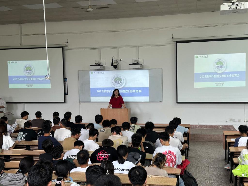 9月26日,公司在骊山校园3教217教室召开2023级本科生国庆节期间安全教育会,公司党委副书记刘训明、2023级全体本科生参会,会议由辅导员韩蕊主持。