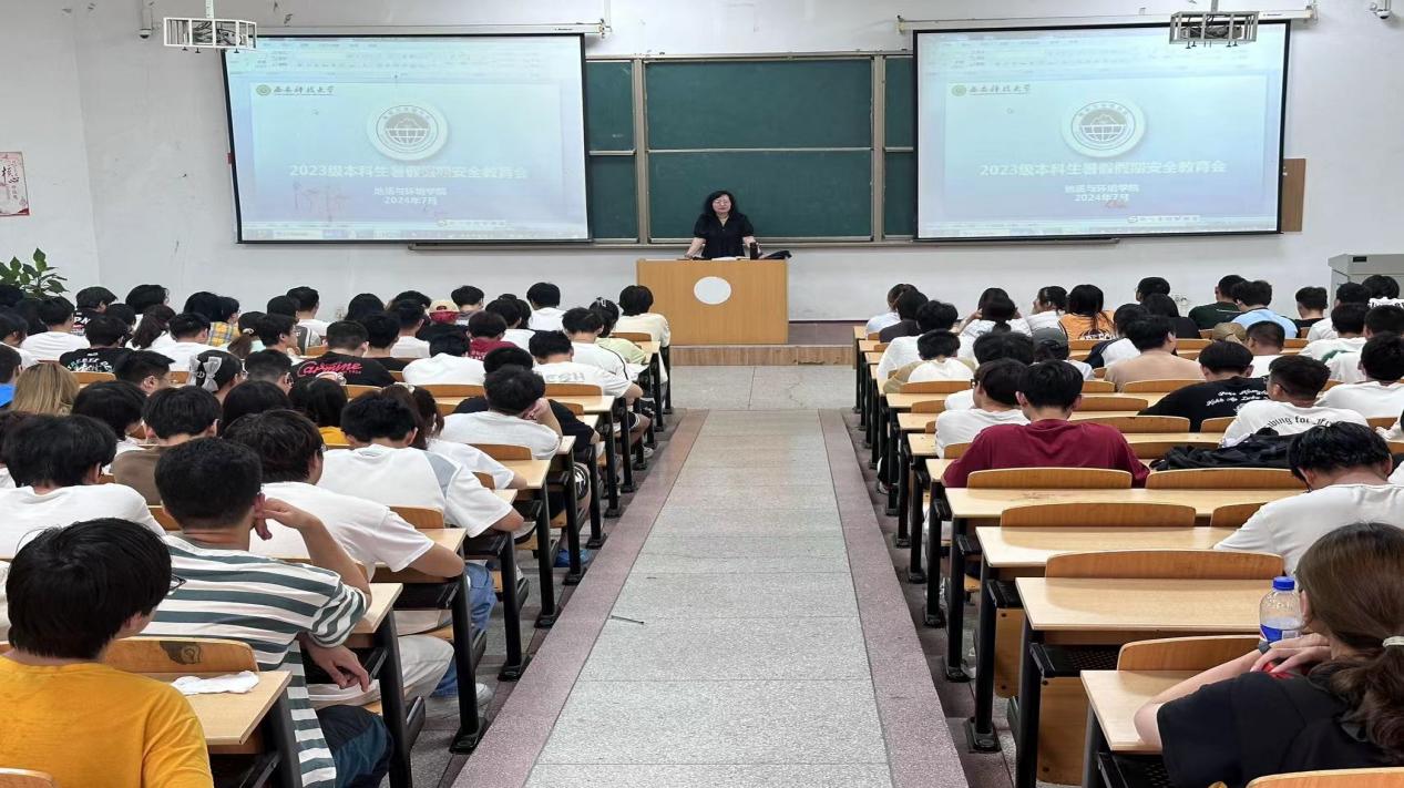为做好2024年暑假员工安全教育管理服务工作,增强员工的安全防范意识,2023级本科生暑假员工安全教育大会于7月9日在9教101召开,会议由辅导员韩蕊主持,2023级全体本科生参加。