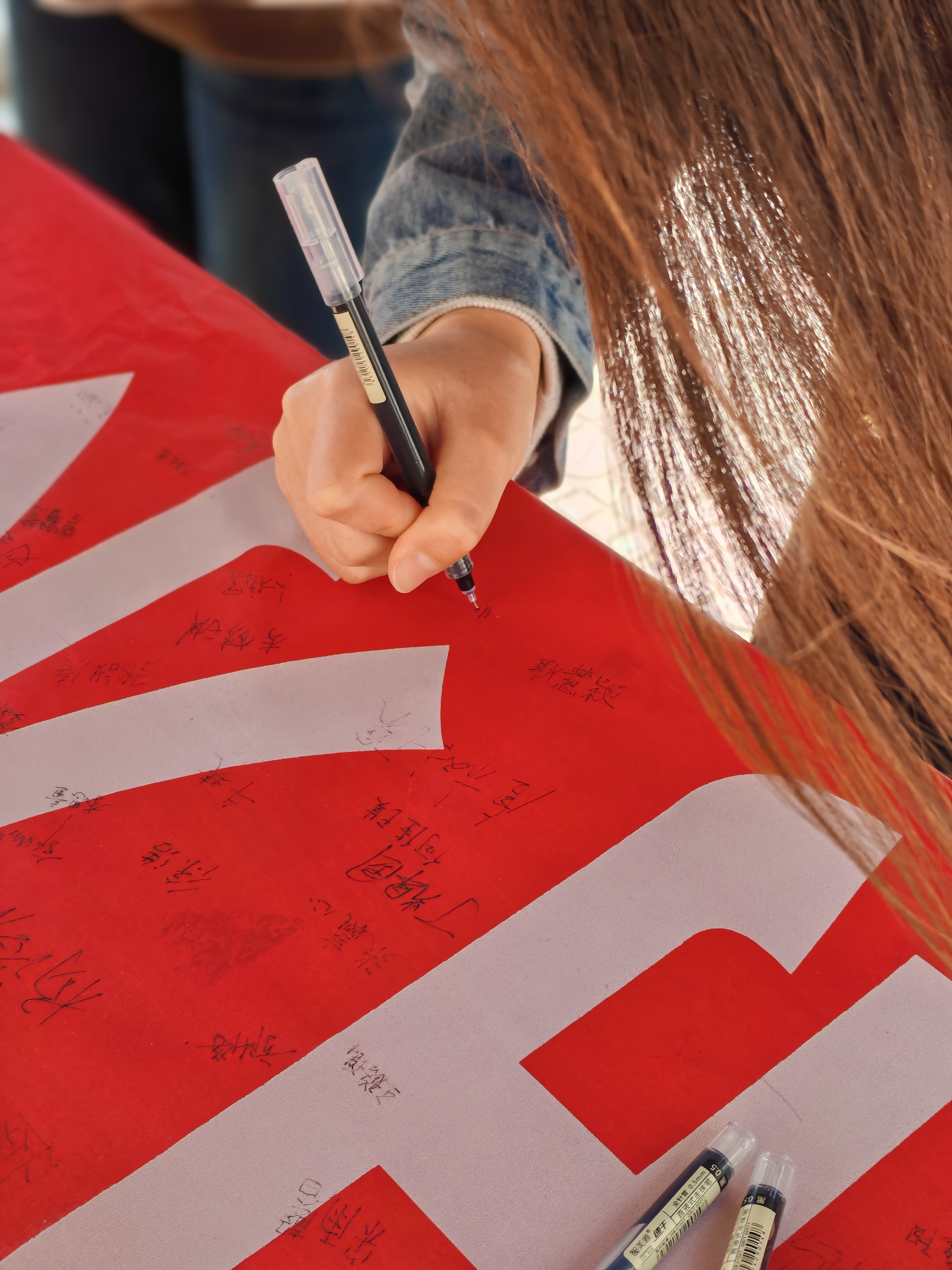 在活动现场,公司设立了咨询点、条幅签字处,摆放了知识展板,志愿者积极向同学们讲解节约用水和保护水资源的重要性,并邀请同学们在“节约用水,你我同行”条幅上签名,承诺从自身做起,从点滴做起,节约用水,保护水资源。