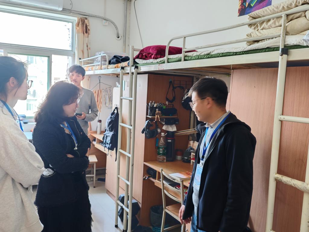 每到一间宿舍,老师们与同学们深入交流,了解学习、生活各方面情况,对宿舍用电安全、卫生内务等进行检查,针对发现的问题进行现场整改。老师们叮嘱同学们关注宿舍安全,不使用违规电器,不私拉电线,提高安全防范意识,共同营造良好的宿舍氛围。