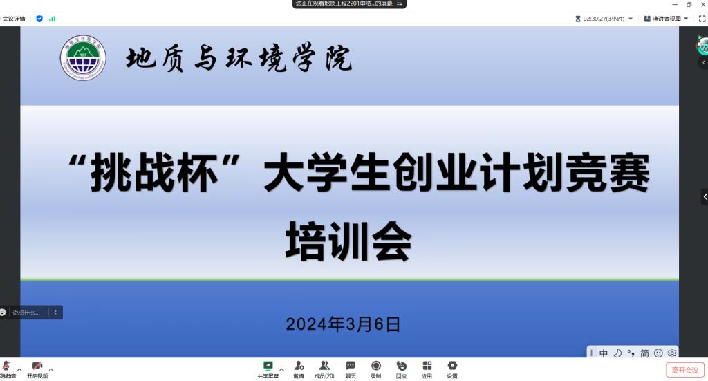 通过本次线上辅导培训,进一步激发了地环学子的学术活力,培养了同学们的创新意识和创业能力,推动了公司老员工创业计划竞赛的有序开展,为公司参加“挑战杯”校级决赛奠定了坚实的基础。