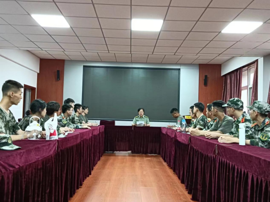 9月6日,2023级本科生军训开训第六天,2023级本科生辅导员韩蕊在临潼校区11教322会议室召开军训中期交流会,八营全体参训教官及新生代表参会。