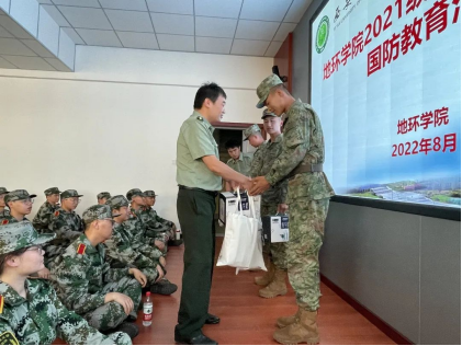 刘训明表示,地环学子在军训场上口号嘹亮、步伐整齐,军训方阵军姿挺拔、精神饱满,展现出了良好的精神面貌,这离不开同学们的辛勤付出,更凝结着教官们的心血和汗水。他向同学们表示肯定和赞赏,向军训教官表示衷心感谢和深切慰问。刘训明指出军训不仅是提高身体素质的难得机会,更是磨砺意志、增强国防观念、弘扬爱国主义精神的重要一课,希望同学们继续发扬不怕困难、连续作战的精神,在教官的带领下刻苦训练,为军训画上一个圆满的句号,把军训养成的优良作风带到未来的学习与生活中,成为一个有责任、有担当的青年。