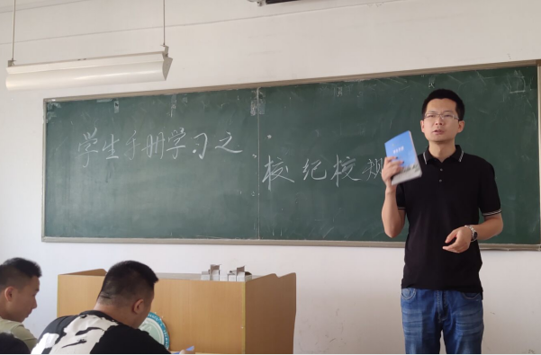9月12日上午,2020级辅导员林伟在骊山校园11教,分专业分班级组织召开新生入学教育学习会,进行了安全、校纪校规、学籍管理、专业思想等方面的教育,列举了大量校园安全方面的案例,提醒各位同学要加强安全意识,尤其是“校园贷”“套路贷”“勤工俭学骗局”“宿舍火灾”等案例,进行了重点分析强调。