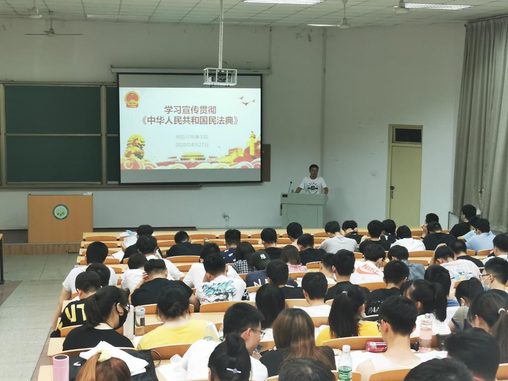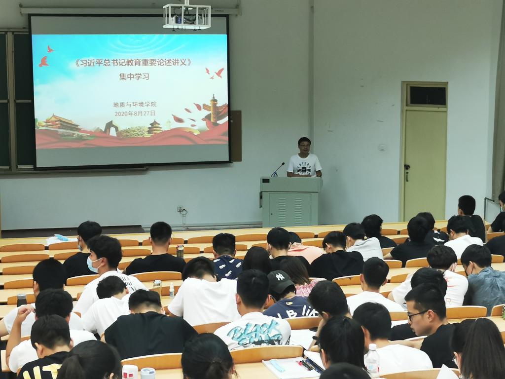 8月27日,太阳成集团tyc122ccvip在临潼校区骊山校园9教101教室召开2017级本科生年级大会,辅导员余小涛组织2017级本科生集中学习《中华人民共和国民法典》《习近平谈治国理政》(第三卷)、《习近平总书记教育重要论述讲义》、“西迁精神”等部分内容,他向员工说明了学习这些知识的重要意义,提出了学习要求,要求各班利用主题班会、团日活动等方式加强学习,丰富学习教育形式,将学习内容转化为内在动力,融会贯通到日常学习生活中,为公司各项事业贡献力量,为实现中华民族伟大复兴的中国梦而不懈奋斗。