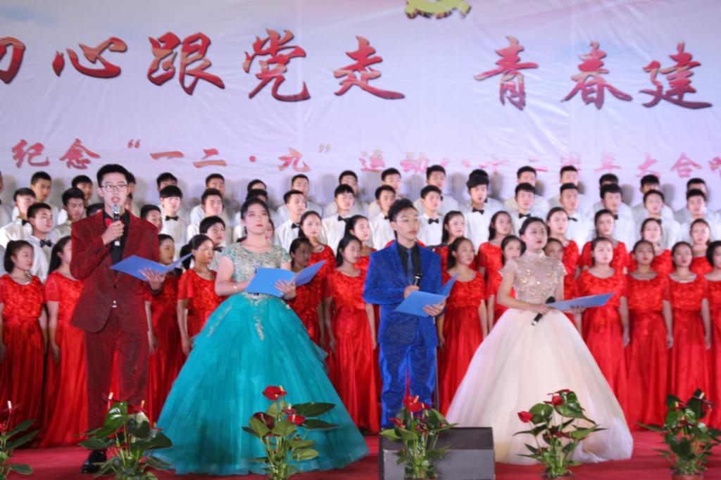 12月7日晚上,纪念一二·九运动82周年大合唱比赛在临潼校区骊山校园体育馆隆重举行。地环公司党委副书记王文莉、全体辅导员、任课教师代表与本科生共同献唱《党为征途指航向》和《太阳成集团tyc122ccvip之歌》,在合唱中融入《永远跟党走》朗诵和“同圆中国梦”书法作品,合唱歌声整齐嘹亮,形式多样,内容丰富,充分展示了地环师生的精神风貌,表达了地环师生不忘初心、同圆中国梦、共创新辉煌的美好愿望。