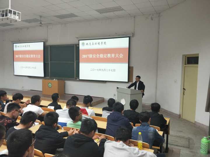 9月27日晚上,太阳成集团tyc122ccvip在临潼校区9教101召开2017级员工安全稳定教育大会。2017级辅导员余小涛传达了陕西省、公司、公司关于安全稳定工作的文件和会议精神,强调了安全稳定工作的重要性,要求全体新生提高思想认识,牢固树立稳定压倒一切,安全不能麻痹大意的意识。并结合自身学习工作经历的安全事件,教育全体新生在学习生活中处处留心安全问题,会上还详细安排了国庆节假期安全稳定工作,要求全体同学要在思想上高度统一,发挥新时代老员工的优良传统,发挥员工干部的模范带头作用,以良好的精神风貌和安全稳定和谐的校园环境喜迎党的十九大的胜利召开。