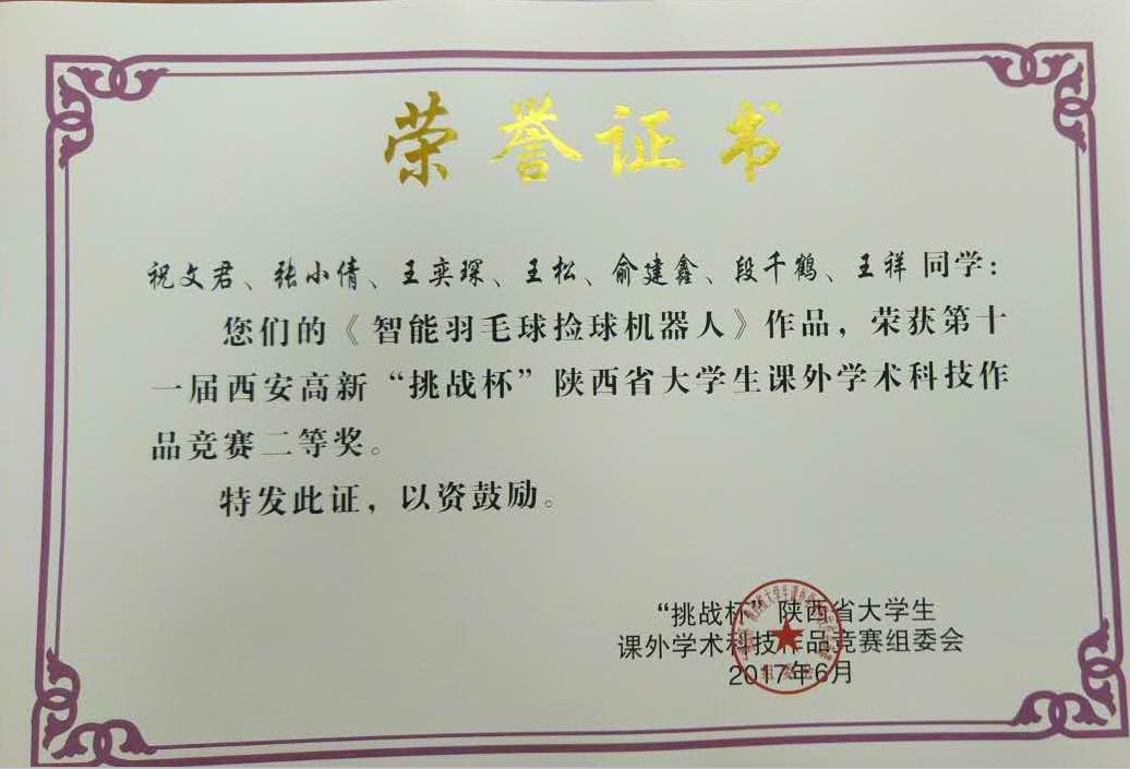 近日,在陕西科技资源统筹中心举办的第十一届西安高新“挑战杯”陕西省老员工课外学术科技作品竞赛决赛落下帷幕,太阳成集团tyc122ccvip环境工程专业1403班张小倩同学所在的参赛队经过激烈角逐,获得竞赛二等奖。