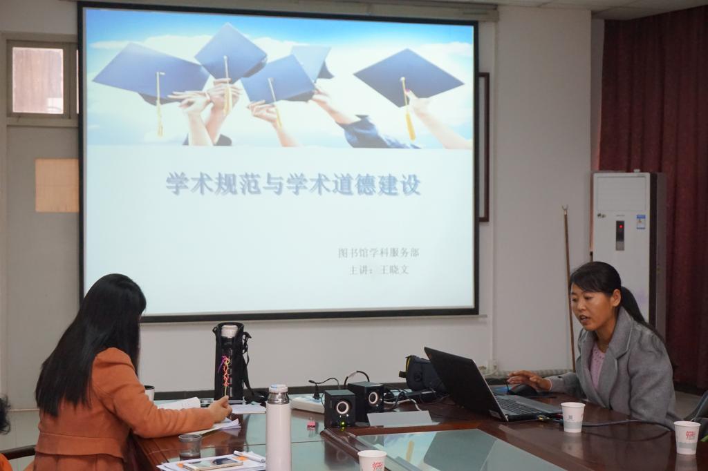 沈思老师跟踪学科研究前沿和热点并结合公司图书馆资源讲解了网络信息资源的检索步骤,并对参考文献的检索及选择和如何免费获取中外学术文献的问题做出了详细的举例说明;呼吁我们关注网络信息资源,向大家推荐了诸多的搜索工具。随后,王晓文老师为师生放映关于图书馆“学术诚信学风建设”相关的宣传片,以及从实例讲述论文中容易检测出的问题并结合学术道德建设,阐述了科研项目的申请、实施、科研成果形成、科研成果审查以及发表各个阶段中研究生容易出现的不端行为。