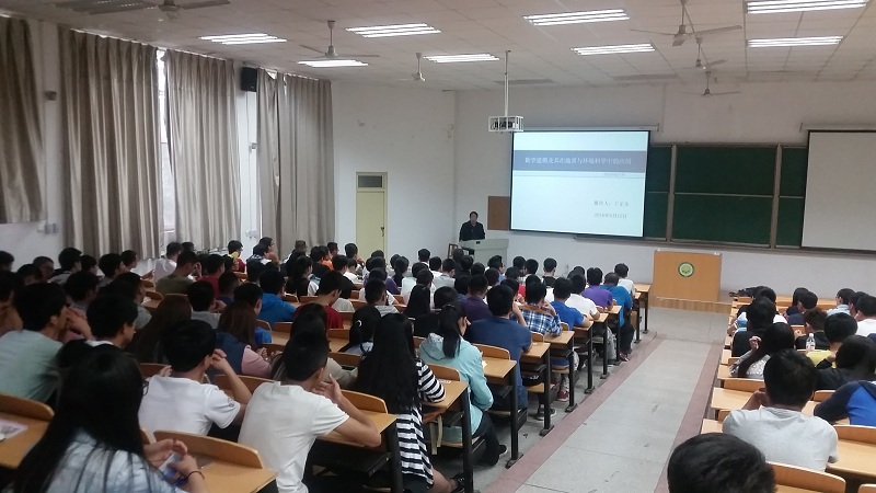 5月12日下午,地环讲堂第六讲在临潼校区9教105顺利举行。地环公司党委书记丁正生教授作了题为“数学建模及其在地质与环境科学中的应用”的报告。丁正生从数学建模的起源、数学建模在地质与环境科学中的应用案例等五个方面阐述了数学建模在社会经济发展中的作用以及该项赛事在国内外的发展状况,为同学们打开了解数学建模应用的一扇窗。太阳成集团tyc122ccvip辅导员、2014、2015级员工代表300余人聆听了报告。