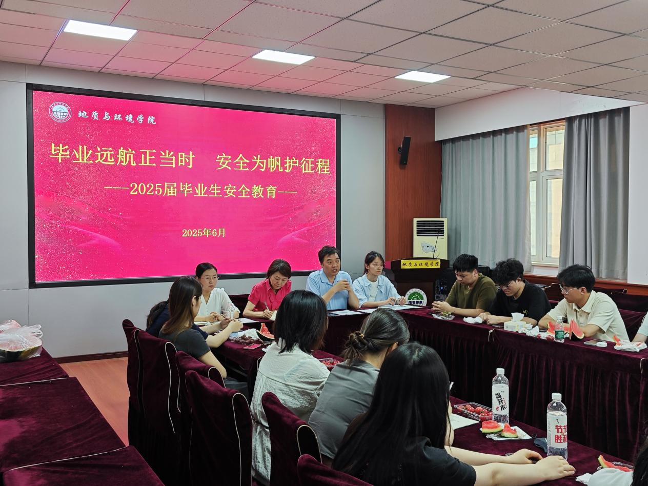 赵雪萍向即将顺利毕业的2025届毕业生代表们致以最热烈的祝贺。她对同学们在校期间的优异表现表示充分肯定,并对毕业生党员和干部提出了殷切期望与明确要求。她强调,作为新时代的青年党员和骨干,在未来的工作和生活中,要始终牢记身份与责任,充分发挥先锋模范作用。她对大家提出四点要求:一要在坚定理想信念上作表率,胸怀“国之大者”,将个人发展融入国家发展大局;二要在担当奉献实干上作表率,立足岗位,展现地质人的责任与担当;三要在追求卓越创新上作表率,持续精进专业技能,勇于探索前沿科技;四要在弘扬优良作风上作表率,严于律己,保持清正廉洁,永葆干事创业的激情与热忱。